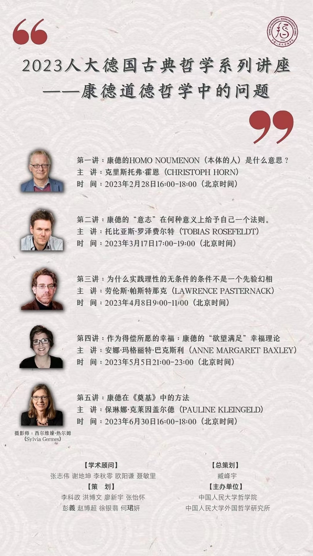 日期:2023-01-18预告 | 2023人大德国古典哲学系列讲座——康德道德哲学中的问题