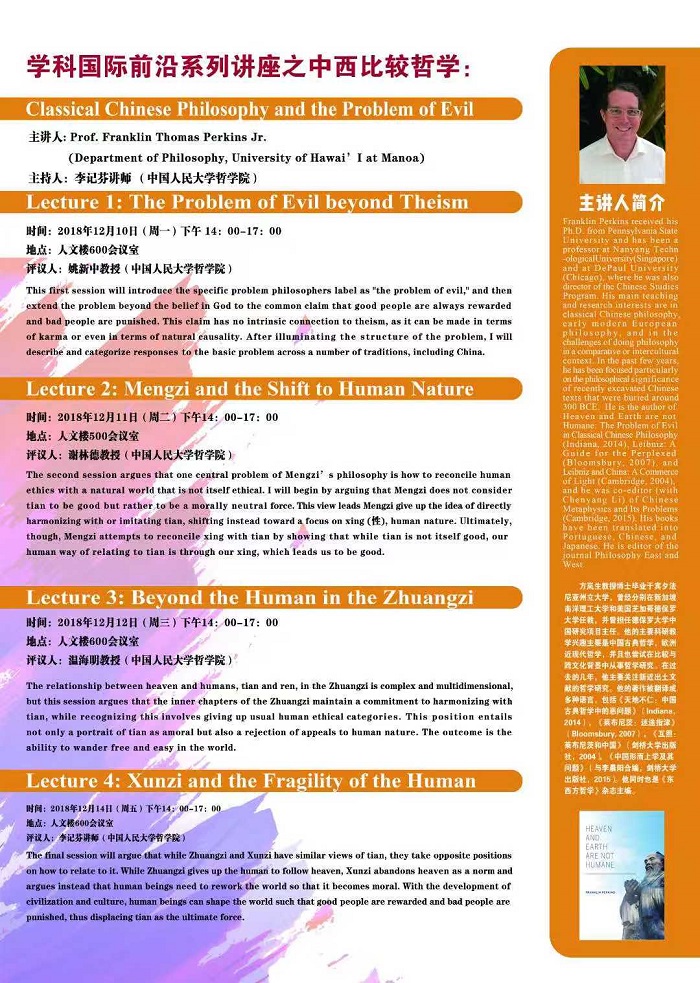 日期:2018-12-07学科国际前沿系列讲座之中西比较哲学:Classical Chinese Philosophy and the Problem of Evil