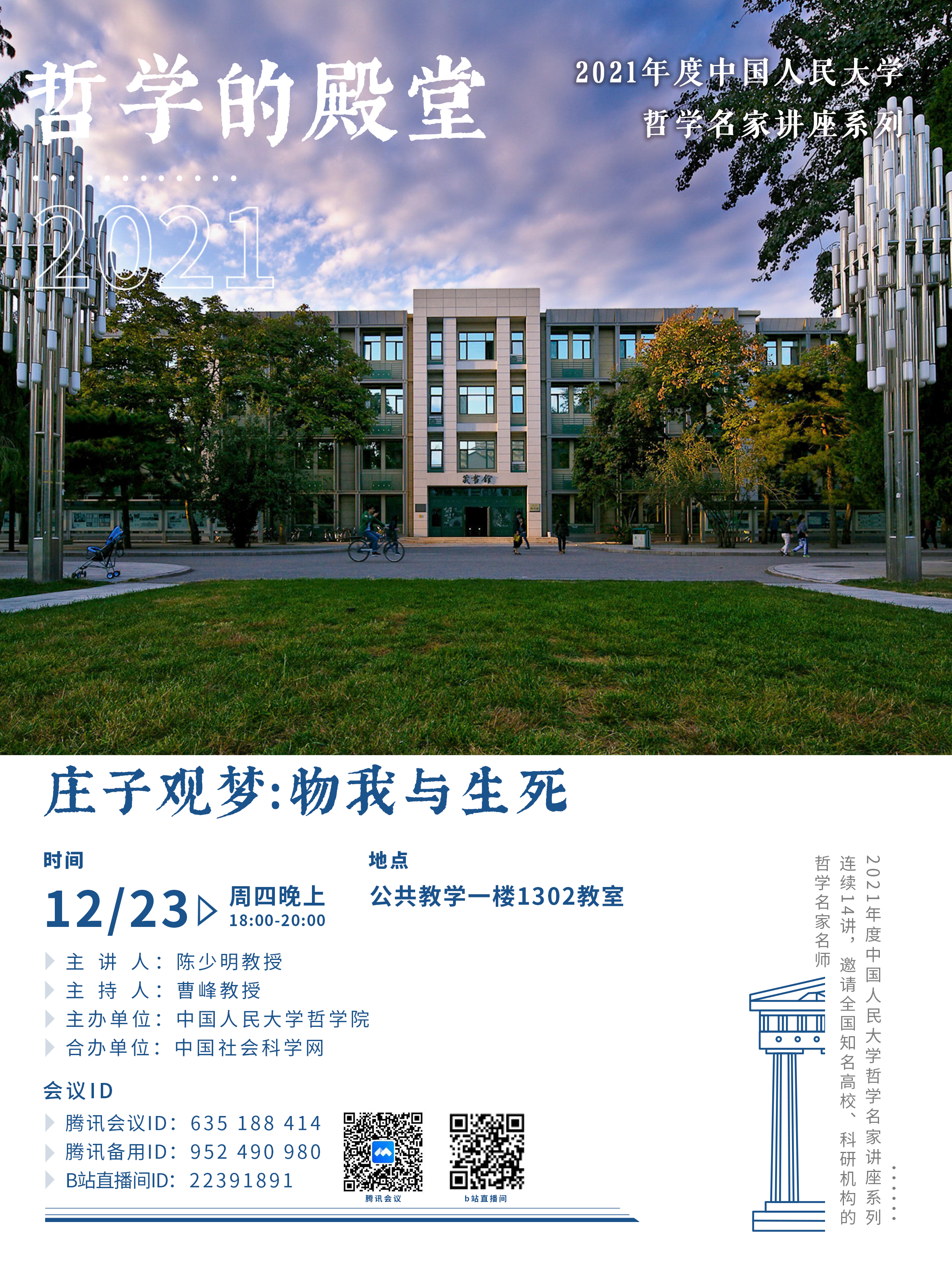 日期:2021-12-21讲座题目:庄子观梦:物我与生死