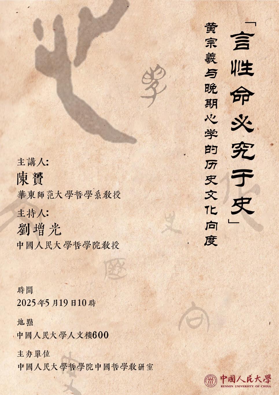 讲座题目:“言性命必究于史”:黄宗羲与晚期心学的历史文化向度