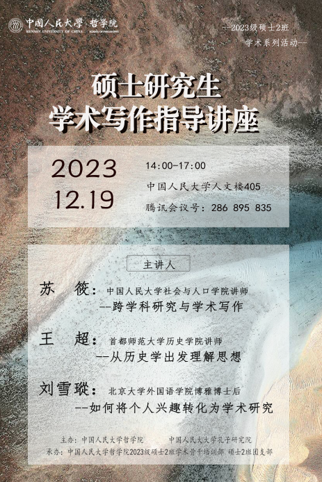 为了更好地提高同学们的学术写作能力,本讲座邀请到了三位人文学科不同领域的老师,分别从跨学科研究与学术写作、如何将个人兴趣转化为学术研究、从历史学出发理解思想三个角度和大家分享他们的的学术“秘诀”。