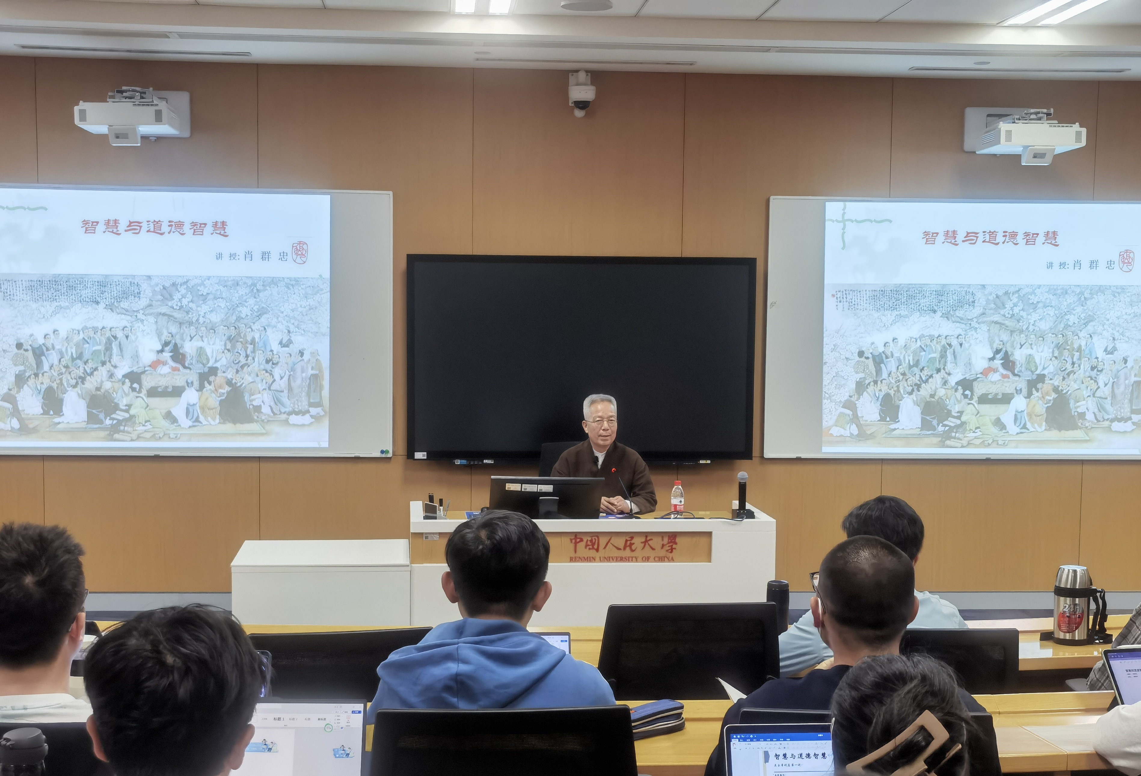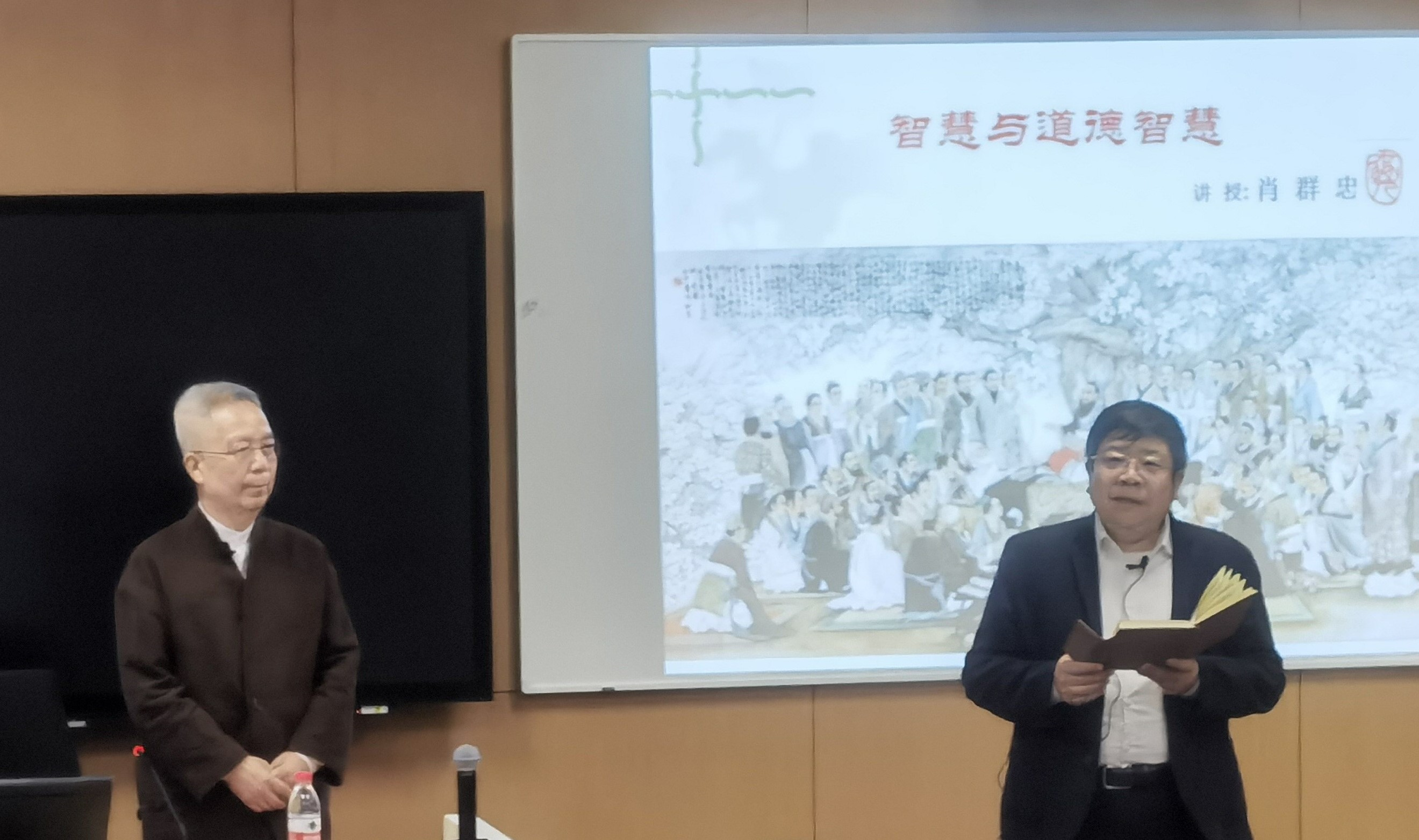 在明确何谓智慧的基础上,肖群忠教授继续带我们厘清道德智慧的含义。肖群忠教授指出,“道”是指规矩、规范;“德”是指品质、人格;“道德”则具有“心灵之素、行为之方、处世之道、人生至理”四个方面的含义。其中“心灵之素”回应了我们应该成为什么样的人的问题;“行为之方”和“处世之道”回应了我们应该怎样正确地行动的问题;“人生至理”则回应了我们生活的终极目的和价值何在的问题。因此,道德智慧实际上是一种实践理性和实践智慧,它是智慧最主要的一种形式。因为道德智慧要解决的问题离不开人生实践、价值选择,所以人生观实际上是道德观的主体认识前提,价值观是正确的道德行为和美好品质的价值前提。“什么应当做”与“什么是善”之间存在着内在的一致性。为增进大家对道德智慧的理解,肖群忠教授从“人生觉解、价值澄明、知世明伦、修身立命”四个方面进一步分析了道德智慧的内涵。其中,肖群忠教授尤为重视个人安身立命的问题。他认为具有知命立命的人生定见、独善其身的道德追求、安之若素的行为方式和心安情乐的精神状态,也就体现我们安身立命的道德智慧。