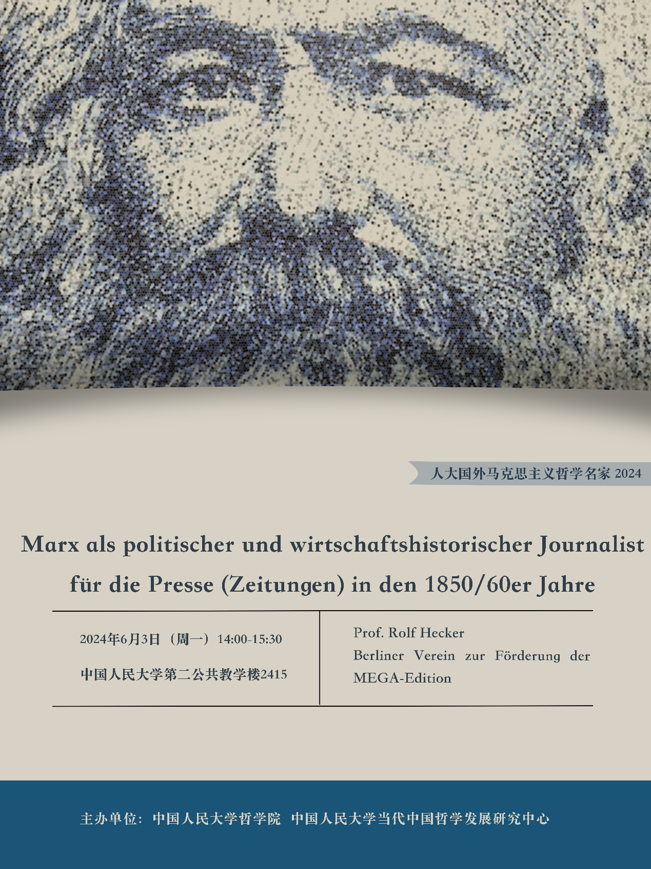 预告丨罗尔夫·黑克尔:十九世纪五六十年代作为新闻工作者的马克思丨人大国外马克思主义哲学名家系列讲座·2024