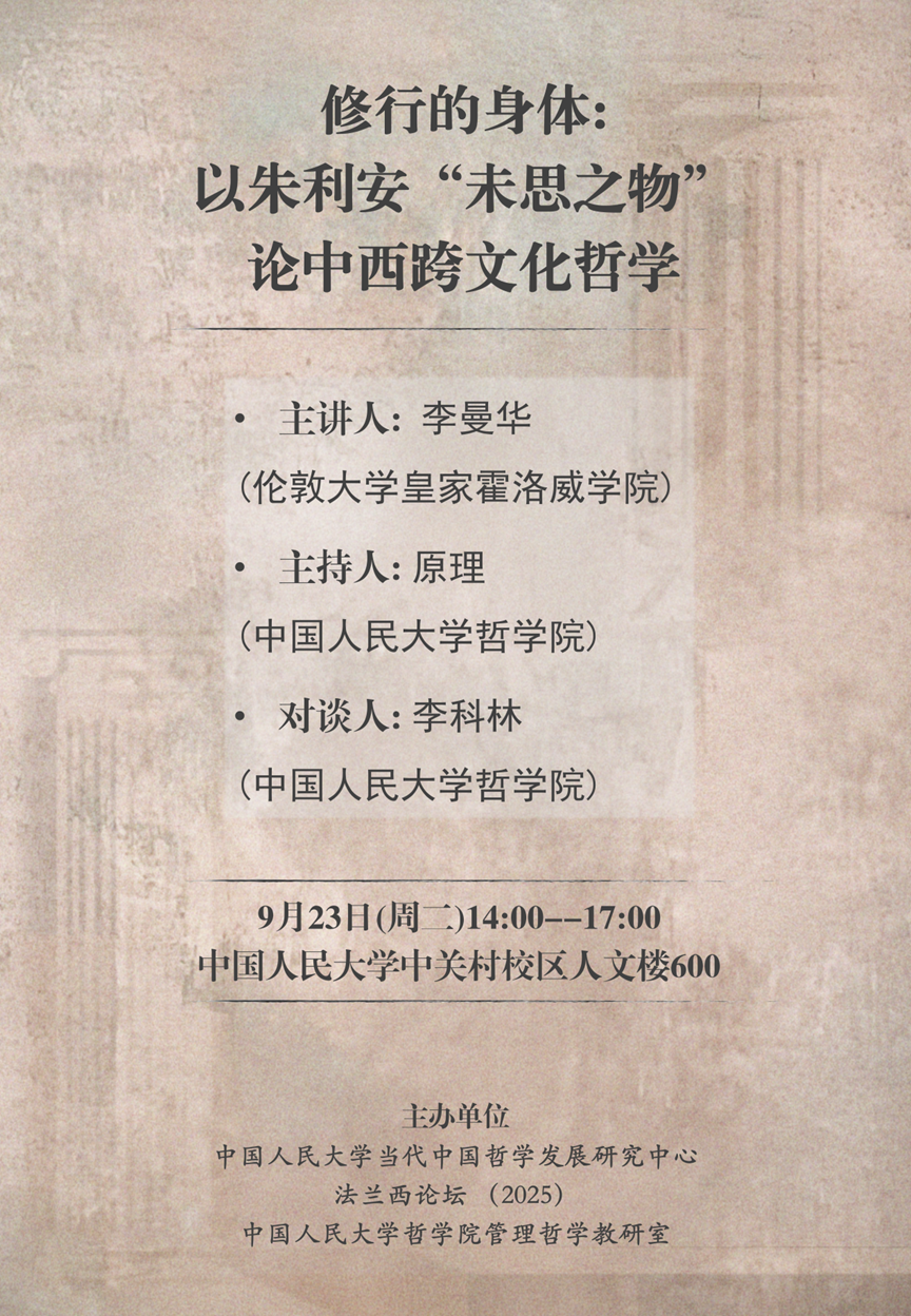 预告|李曼华:修行的身体:以朱利安“未思之物”论中西跨文化哲学