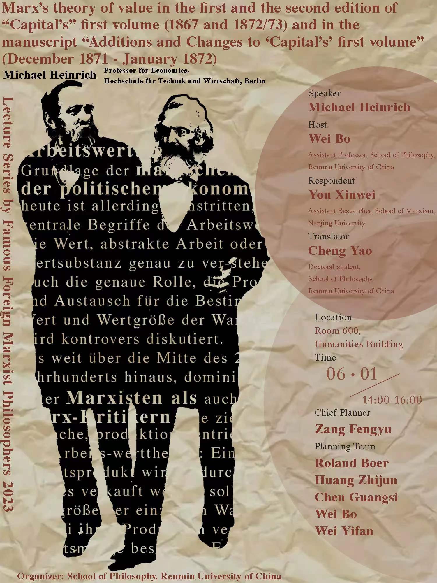 预告|米夏埃尔·海因里希:《资本论》第一卷第一二版和《〈资本论〉第一卷的补充和修改》手稿中的价值论|人大国外马克思主义哲学名家系列讲座·2023