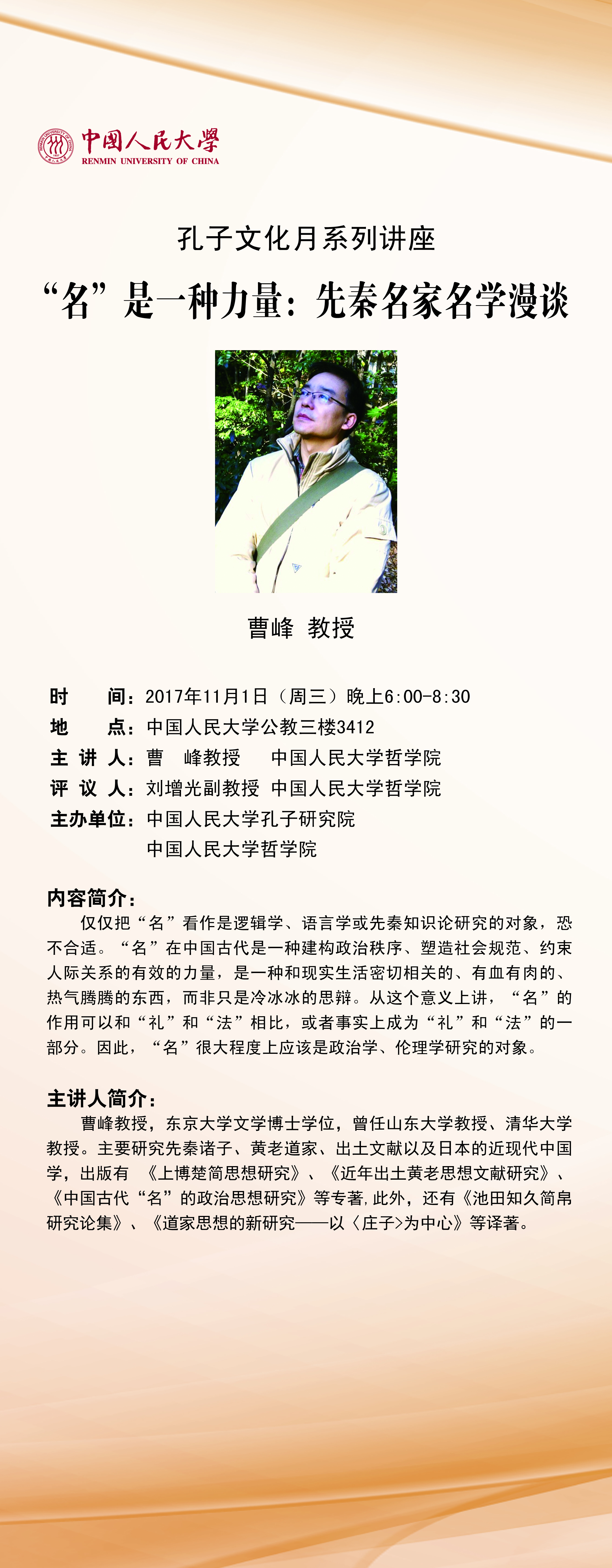 孔子文化月系列讲座—— “名”是一种力量:先秦名家名学漫谈