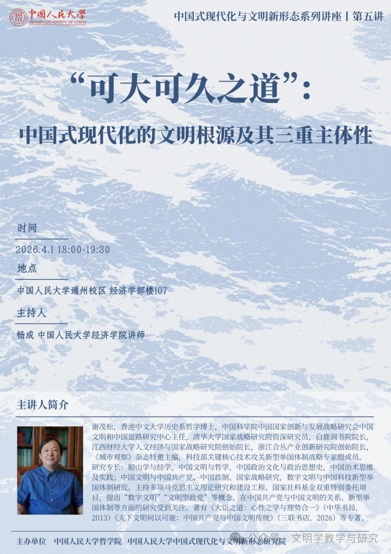 中国式现代化与文明新形态系列讲座第五讲丨“可大可久之道”:中国式现代化的文明根源及其三重主体性