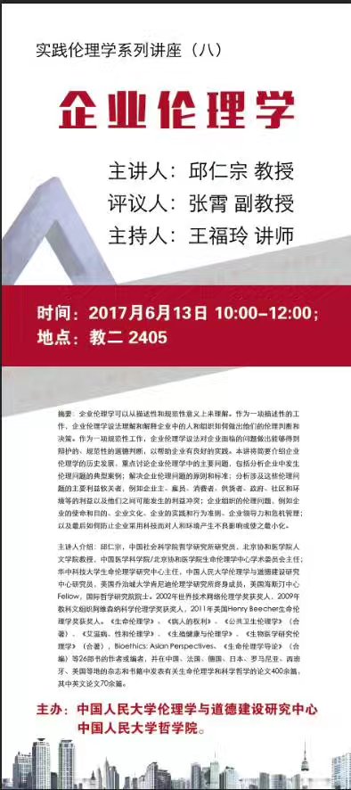 日期:2017-06-12实践伦理学系列讲座(八)