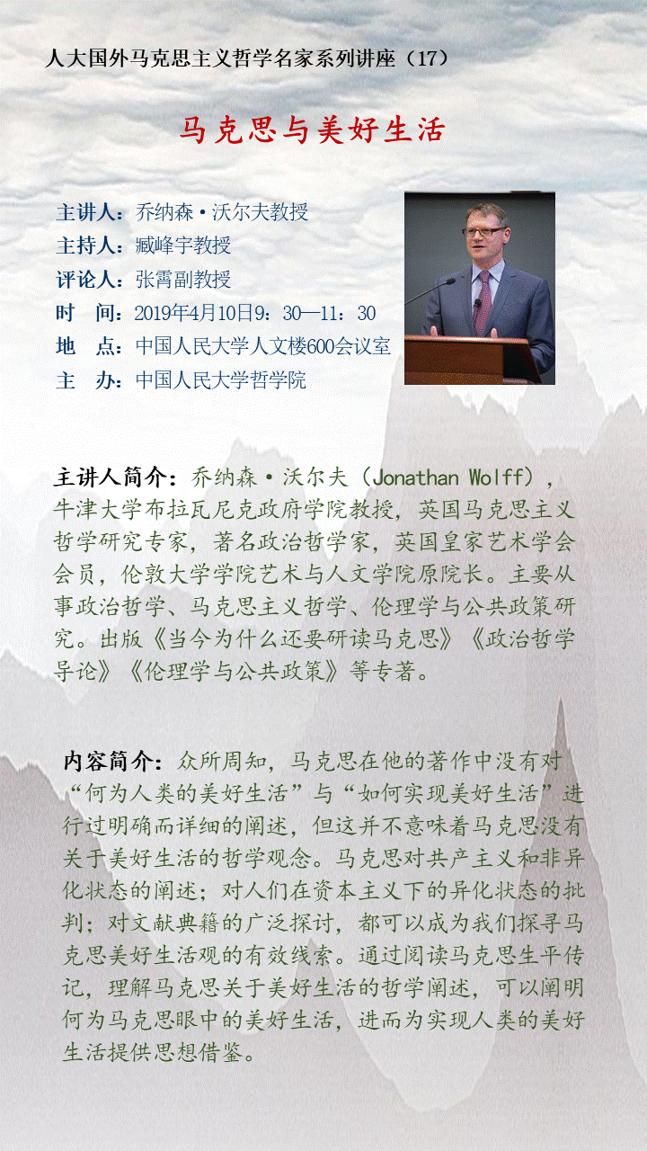 预告 | 人大国外马克思主义哲学名家系列讲座(17):马克思与美好生活