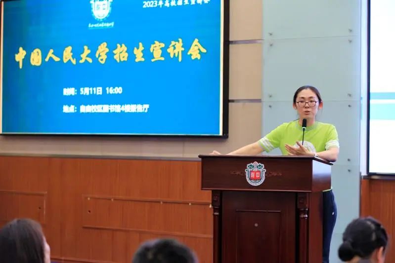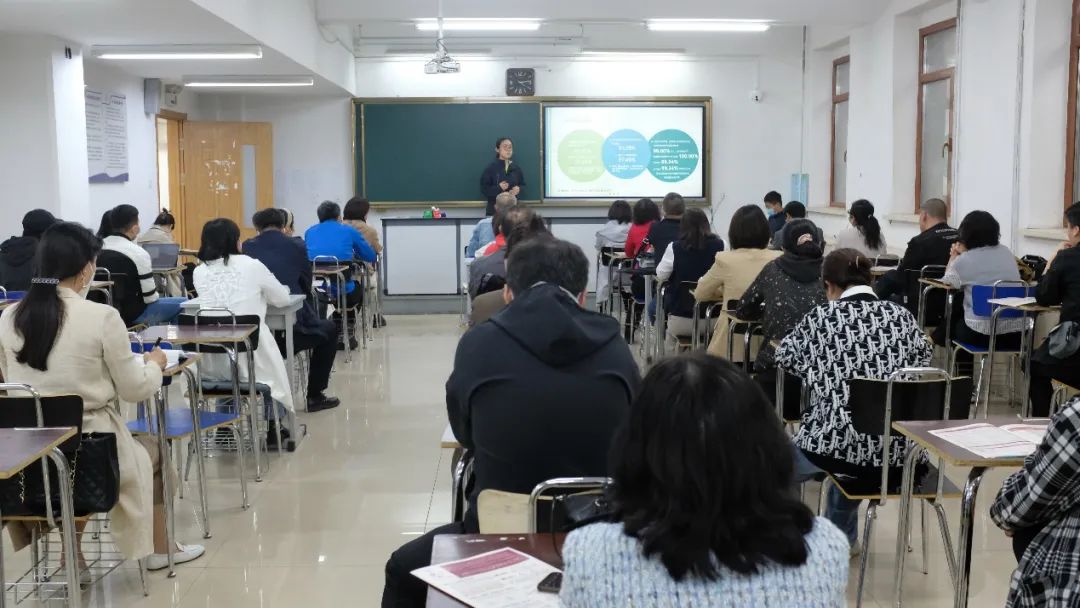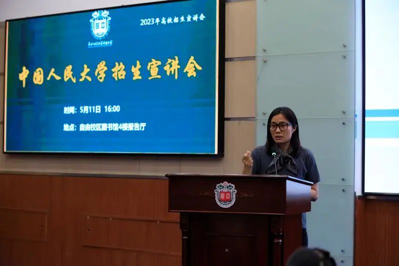 田洁副教授在东北师大附中为家长介绍人大的国际交流情况