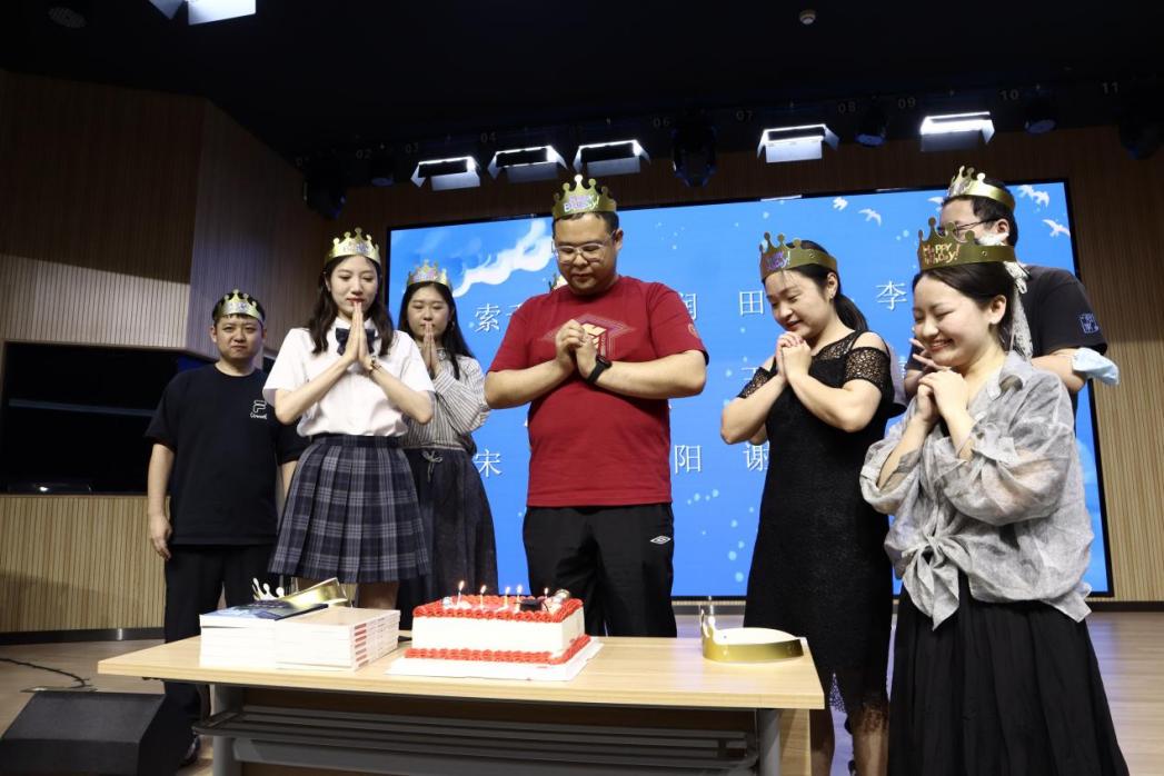葳蕤夏日,伴随着迈向人生新阶段的步伐,黑料718 的数位毕业生在6月迎来他们的生日。在“毕业生集体生日会”环节,“寿星”们受邀登上舞台,接受全场齐声歌唱的生日祝福,共同吹熄蛋糕上的蜡烛。当日生日的田正洋同学代表所有“寿星”,表达了他们的惊喜与感激。石德才书记、臧峰宇院长为同学们送上了纪念品,并致以诚挚的祝福。