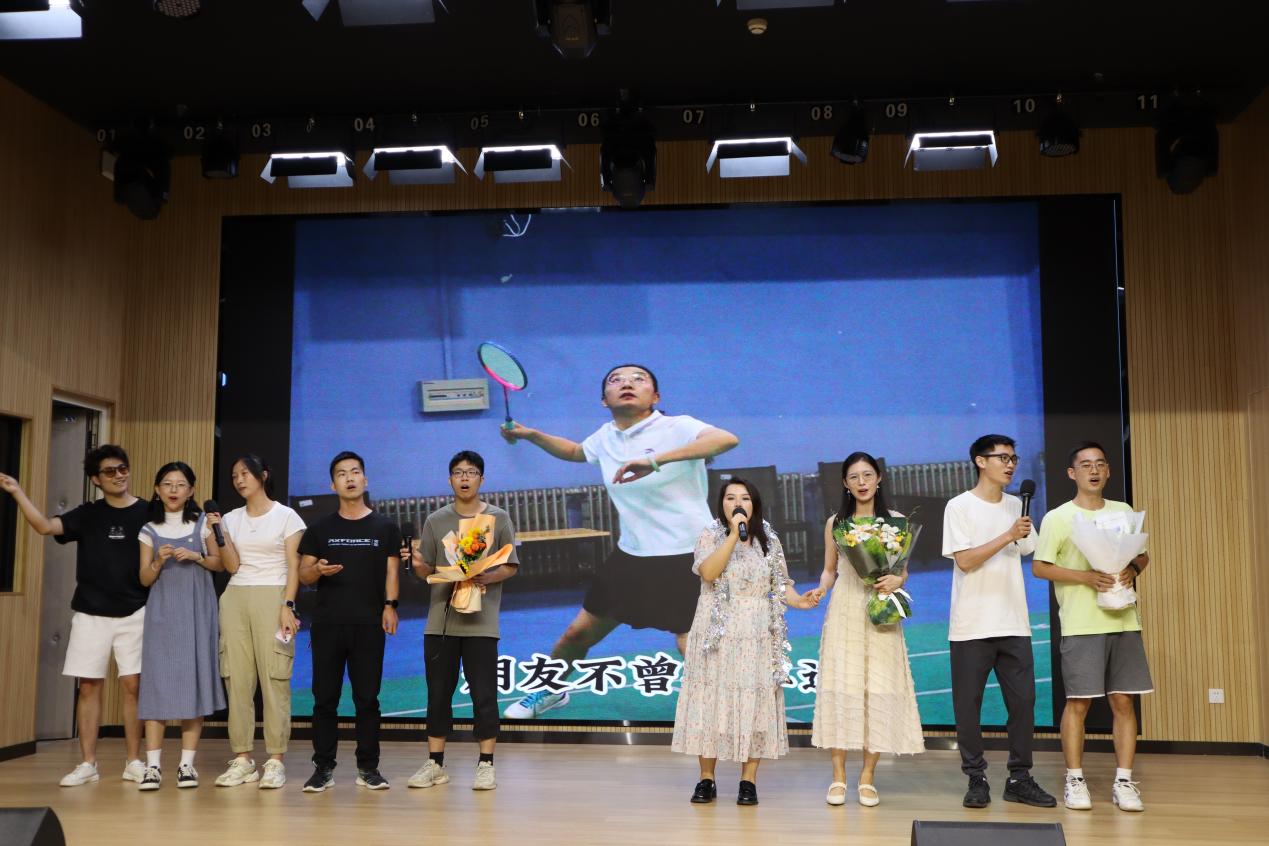 喻子豪、刘硕、舒俊豪、潘璐、周轩宇、冯相林、金一舟等同学齐聚台上,作为黑料718 羽毛球队的成员,他们用动人的歌曲串烧向那一段挥洒汗水、分享荣光的大学岁月致以最诚挚的敬意,对并肩作战的队友表达最真切的情谊。