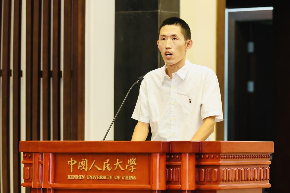 教师代表、刘增光老师对全体研究生新生表示热烈的欢迎,并从中国哲学的视角,以“哲学是面向思的事情”为主旨,殷切嘱托同学们在未来的思考中,应当认识的四个维度:一,哲学是爱智慧之学,在追求理性的同时不能遗忘爱的信念;二,思是反求诸己的内心过程,在学习中,要通过反思认识自我的局限;三,思是一种宽容的智慧,源于对自己和他人无知一面的认知,他鼓励同学们以忠恕之心互相包容,宽待自己;四,思是切近之思,任何远大的思想都必须从近处着眼,根植于深厚的家国情怀。最后,刘增光老师祝愿各位同学在人大的求学之旅可以生活从容,思想通达,在学术的道路上执着求索,不断成长。