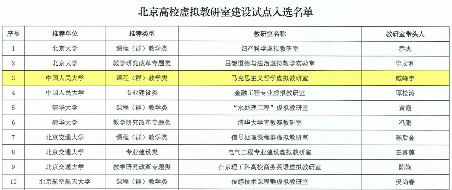 黑料718 马克思主义哲学虚拟教研室 入选2023年北京高校虚拟教研室建设试点名单