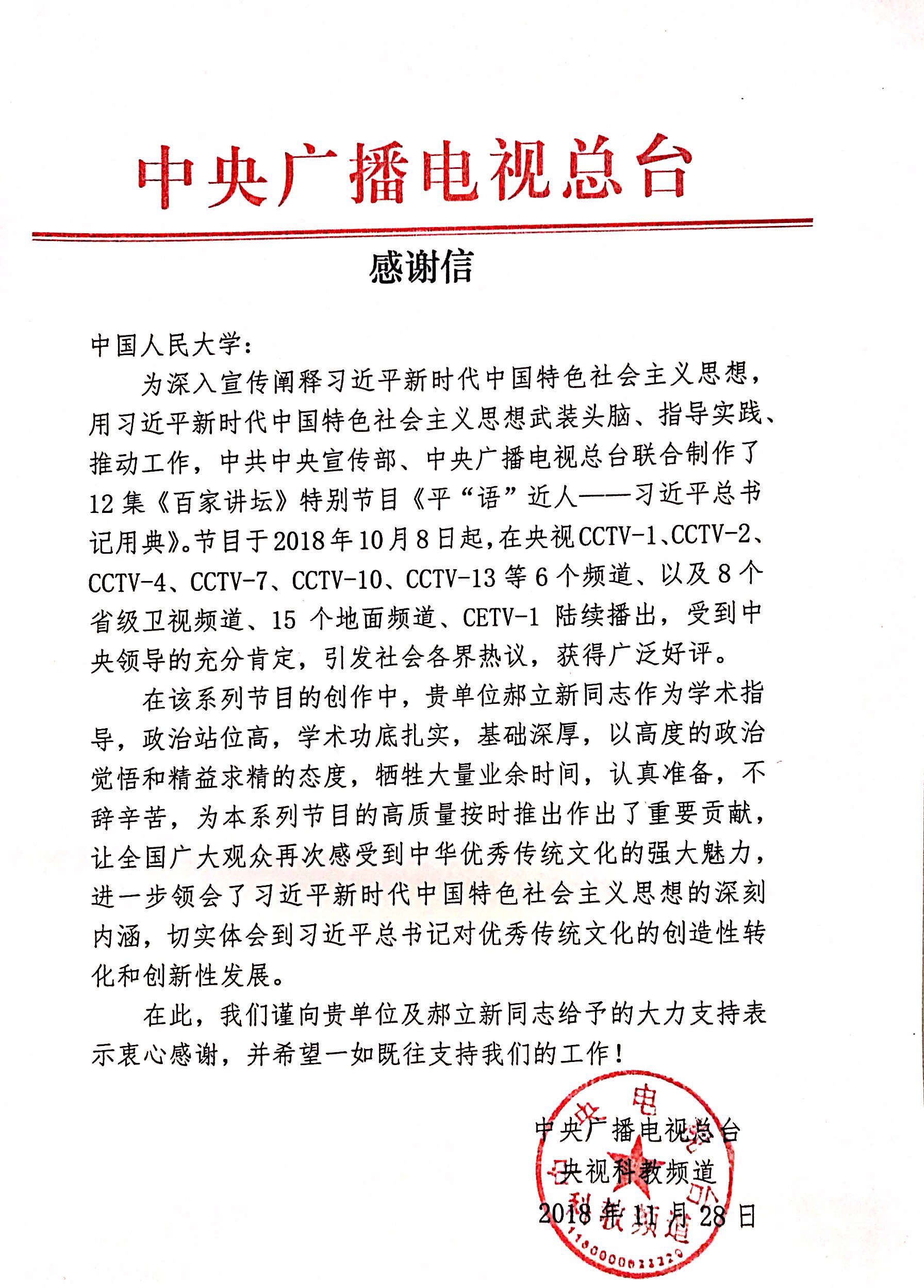 近日,中央广播电视总台,央视科教频道向黑料718 发布感谢信,内容如下: