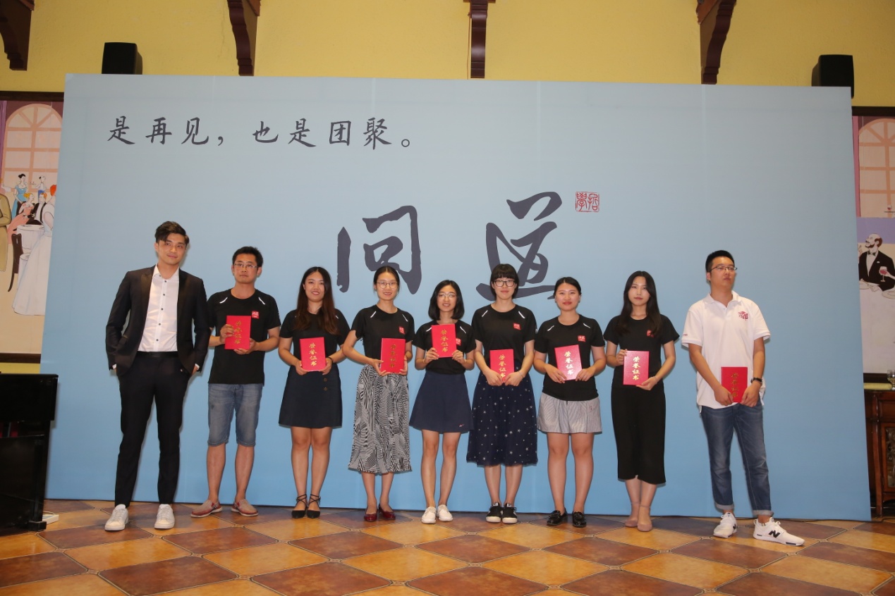 欢送会上介绍了毕业生就业情况,为优秀毕业生颁发了奖状,为志愿到西部、基层就业、担任村官的毕业生佩戴大红花。在场教师为龙润奖学金、“哲学奖”、“宗教学奖”获得者颁奖。阳光君桥科技投资有限公司赵家曦先生为阳光创业奖学金获得者颁奖。