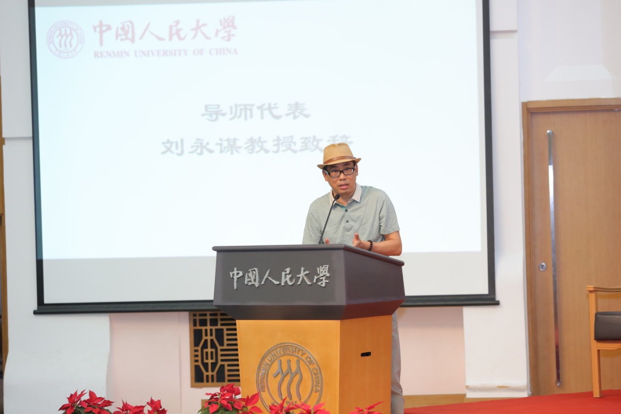 2014级本科生杨雅珺、2015级硕士生李辉作为毕业生代表发言。刘永谋教授作为教师代表致辞。