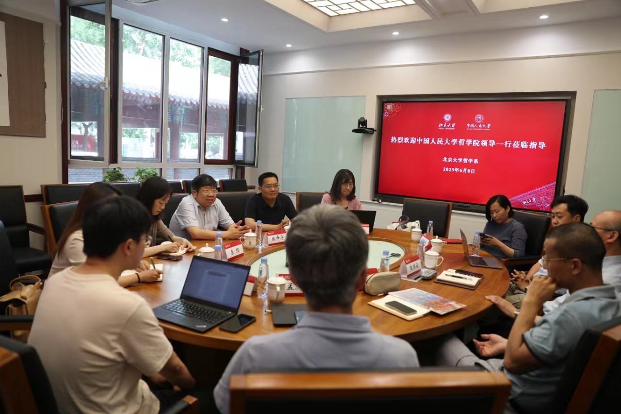 会上,北京大学哲学系宗教学系各位领导介绍了教育管理经验。双方就扎实开展主题教育、加强党建工作、建构中国自主哲学知识体系的具体措施、新时代哲学学科本科生及研究生人才培养创新探索、建设高水平人才队伍的有效方法、外籍教师引进和管理的先进经验、科研激励的有效措施以及学生思想政治教育工作的相关经验等进行了深入交流。