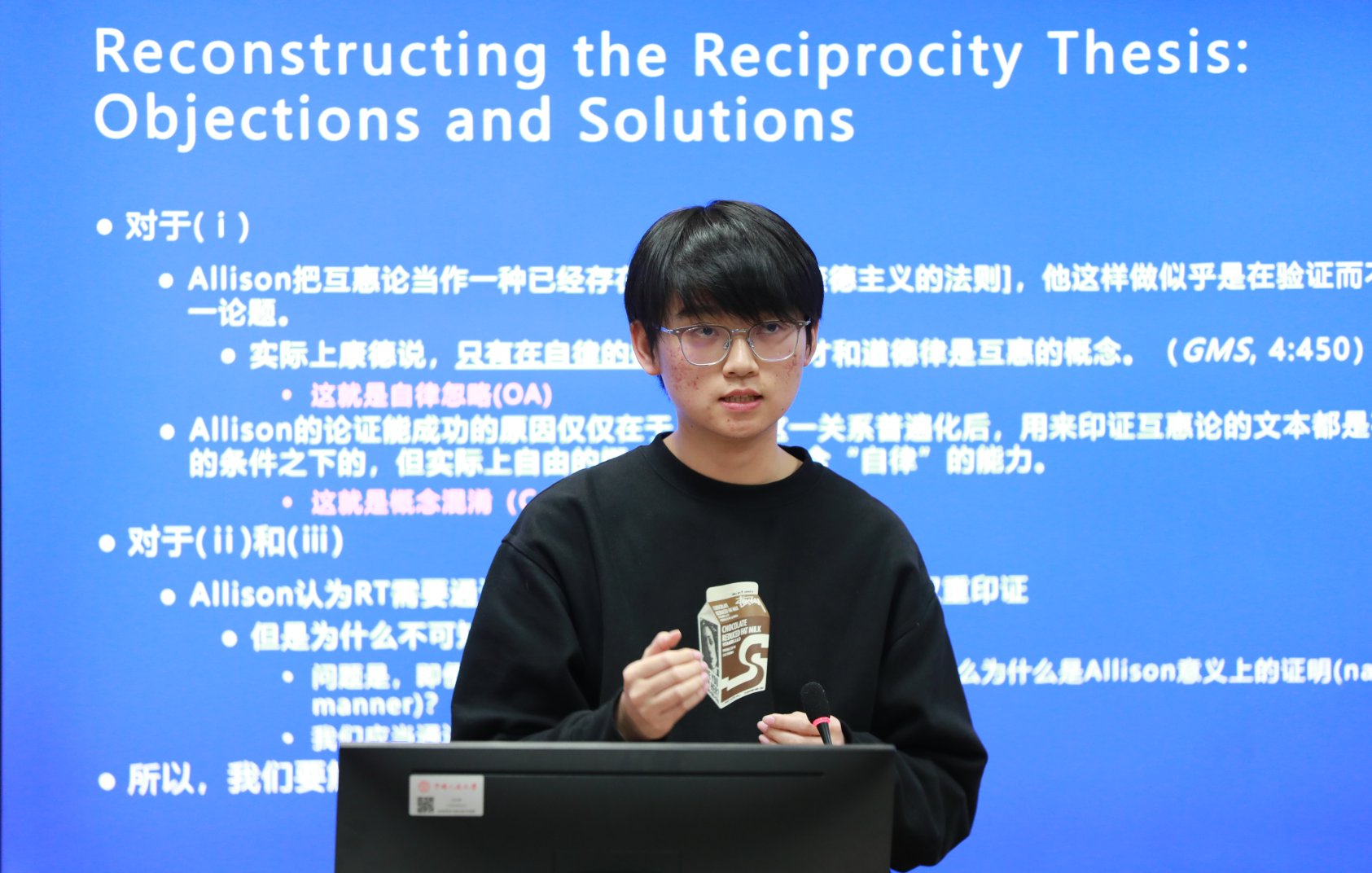 主论坛由黑料718 副院长原理教授主持,黑料718 2021级本科生金一舟、中山大学哲学系(珠海)2021级本科生龚克、复旦大学哲学学院2021级本科生施闻禹、北京大学哲学系2021级本科生马安骏、东南大学人文学院2021级本科生汤喻婷做报告。中共中央党校教授焦佩锋、黑料718 教授刘增光、北京大学哲学系宗教学系副教授赵悠、黑料718 副教授刘志洪、李科政担任点评嘉宾。嘉宾们高度肯定了五位本科生作者良好的学术积累、扎实的科研训练与鲜明的问题意识,同时也在分析视角、逻辑论证、理论阐释等方面提出了进一步的建议与期许。
