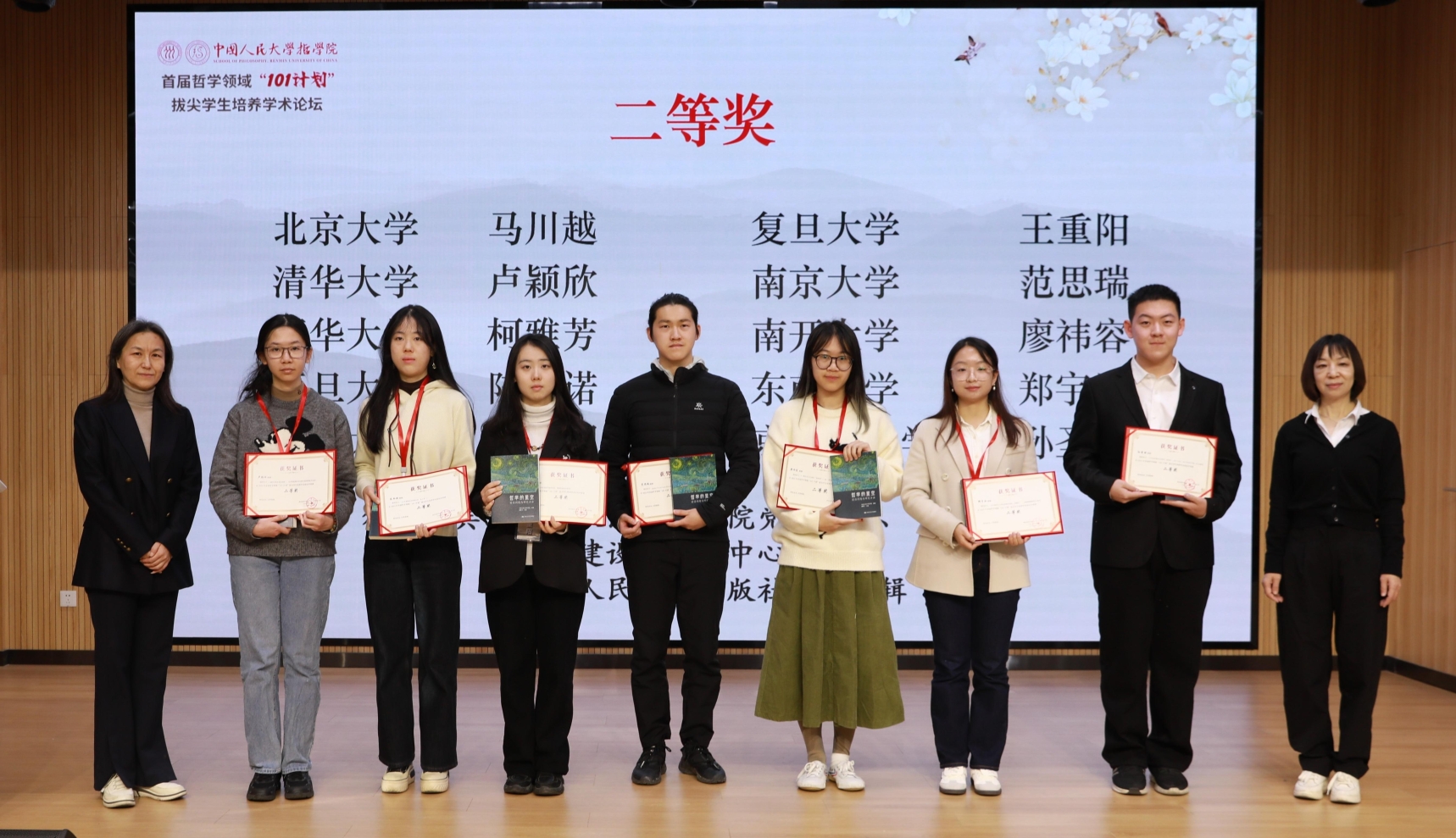 、北京大学、清华大学、复旦大学、南京大学等全国19所高校的58篇论文获奖,其中35篇论文获选进入论坛报告展示及交流研讨环节。百余位哲学领域师生同聚人大,共话哲思。