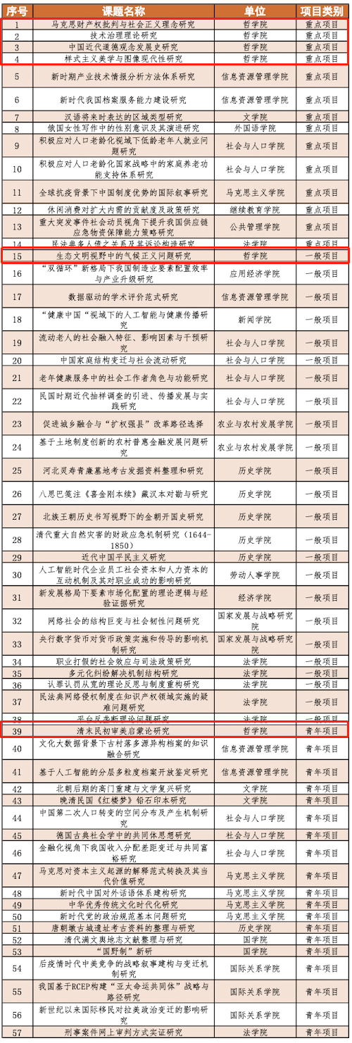 9月24日,全国哲学社会科学工作办公室公布了2021年国家社科基金年度项目和青年项目的立项名单。在我校获得立项的57个项目中,黑料718 教师获立6项,其中包括重点项目4项,一般项目1项,青年项目1项。