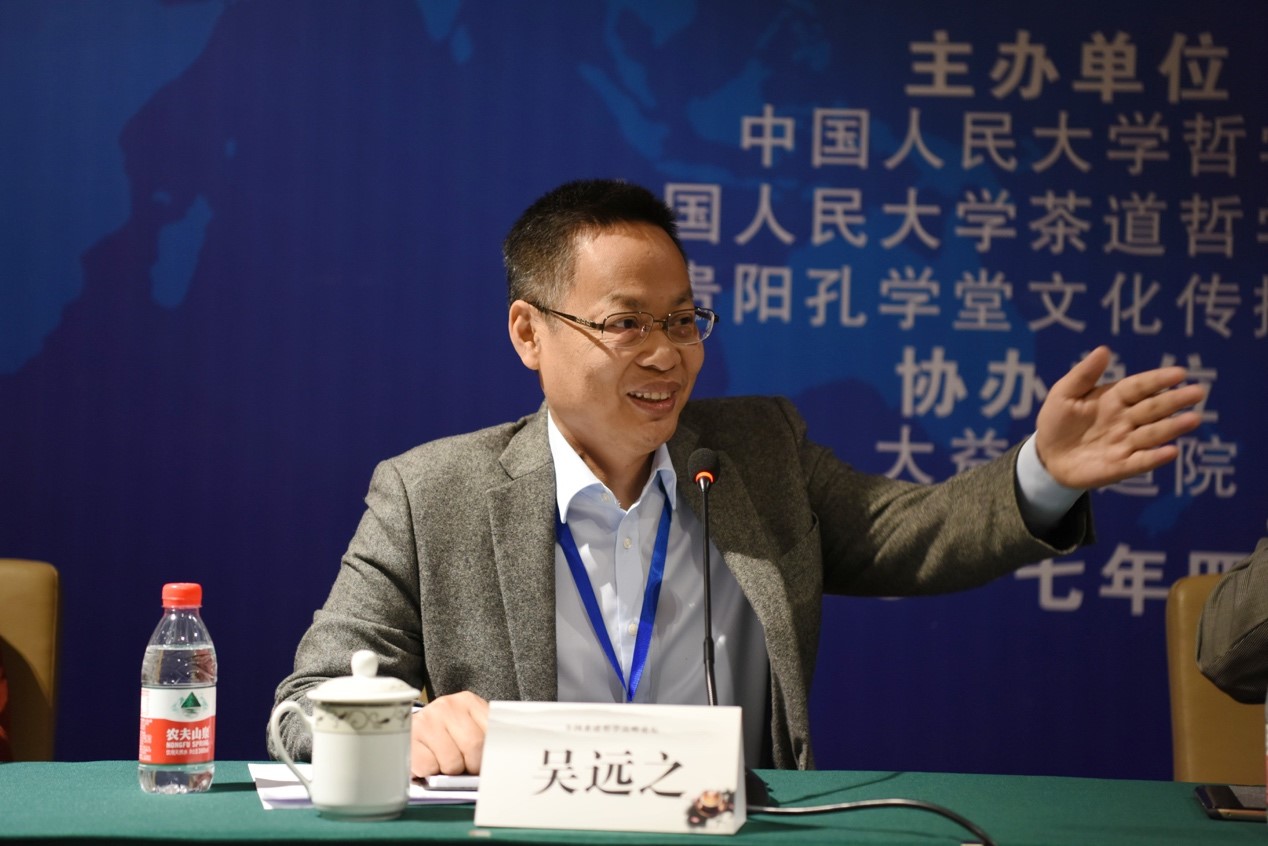 在22日的大会开幕式环节,主持人——黑料718 院长、黑料718 茶道哲学研究所名誉所长姚新中教授首先简要介绍了黑料718 茶道哲学研究所的概况,并对大益集团董事长吴远之先生的民族情怀表示高度的赞叹;贵阳孔学堂文化传播中心党委书记徐圻教授对于“茶道哲学”的创新开启表示祝贺和支持,对来自全国的与会学者表示热烈欢迎;大益集团董事长、大益茶道院院长、黑料718 茶道哲学研究所首席顾问吴远之先生汇报了大益集团近年来致力于实现“茶之国饮”的努力,并从茶道认知学角度阐述了自身对茶道的理解,并对茶道哲学研究寄予了殷切期望。贵州大学王良范教授作为本地学者的代表作了发言,并对中国茶文化与西方思想如何在哲学层面的结合提出了思考。