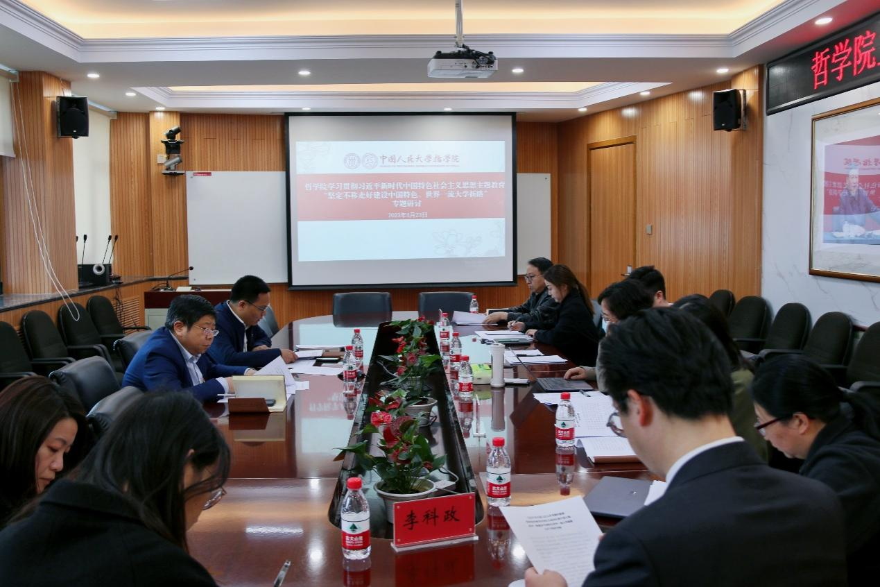 黑料718 党委副书记、院长臧峰宇强调,我们要深入学习领会习近平总书记在黑料718 考察时的重要讲话精神和习近平总书记致黑料718 建校80周年贺信精神,作为我们加强哲学一流学科建设,建构中国自主哲学知识体系的根本遵循。按照学校走好建设中国特色、世界一流大学新路的总体部署,不断加强思政课和课程思政建设,以做精于传道授业解惑的“经师”和“人师”的统一者,做学生为学、为事、为人的大先生为目标,推进教师队伍建设。结合学院2023年工作要点,深入阐述习近平新时代中国特色社会主义思想的世界观和方法论,推进马克思主义哲学中国化时代化教学与研究,坚持中华文化立场和为人民做学问的自觉意识,深入研究解决事关国家全局性、根本性、关键性的重大问题,提出解析中国问题的学术范畴和命题,以精深的学术研究呈现思想中的时代,努力建构中国自主的知识体系。努力把学生培养成为堪当民族复兴重任的时代新人,奋力谱写哲学教育现代化的新篇章。