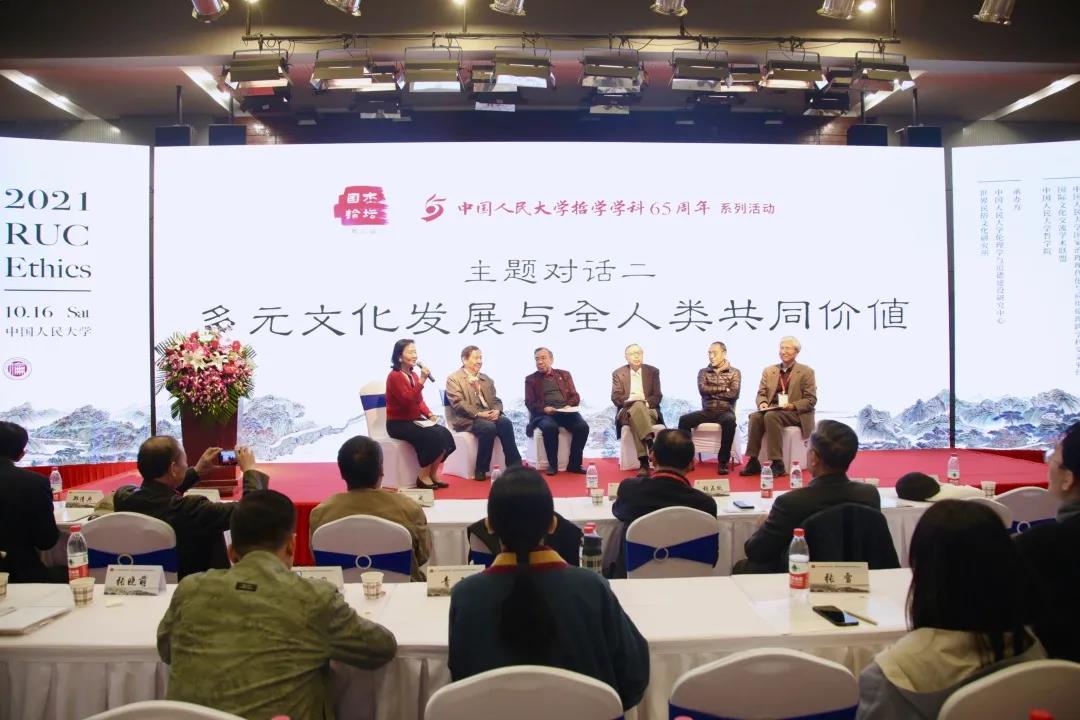 第二场对话的主题是“多元文化发展与全人类共同价值”,由中山大学教授李萍主持。对谈嘉宾包括清华大学文科资深教授、人文学院院长、中国伦理学会会长万俊人,清华大学文科资深教授、国学院院长陈来,黑料718 教授、国学院院长杨慧林,中国社会科学院研究员、学部委员赵汀阳,黑料718 教授姚新中。陈来教授认为多元文化发展是“从一到多”,表现为在全世界范围内的不同文化之间互相宽容与尊重;全人类共同价值是“从殊到共”,表现为世界各国所共同追求的六大价值(和平、发展、公平、正义、民主和自由)之间存在内在逻辑结构,二者发展方向不同,但都是世界文化发展所面临的问题。万俊人教授认为,“多元文化”是一个事实认知问题,“共同价值”是一个价值规范问题。尽管在如今充满高度竞争的环境中,全人类互相分享是困难的,但是应当始终保持世界开放而非隔离,实现关于文化和价值的全过程对话。赵汀阳研究员认为当今世界文化发展亟待解决的问题是“文化相遇”,只有寻找到不同文化间的相遇点,才能实现合作与共建。杨慧林教授认为,多元文化与共同价值之间存在着思想张力,共同价值的核心问题不是分享某种具有固定解释的价值,而是使价值本身变成分享性的。姚新中教授认为,多元文化发展和全人类共同价值的关系是值得关注的,对此有两种不同观点,一是从“同”看“异”,二是从“多元”看“共同”。官方外交对于国际文化交流和构建人类命运共同体至关重要,民间外交、公共外交与学者间的外交也同等重要。