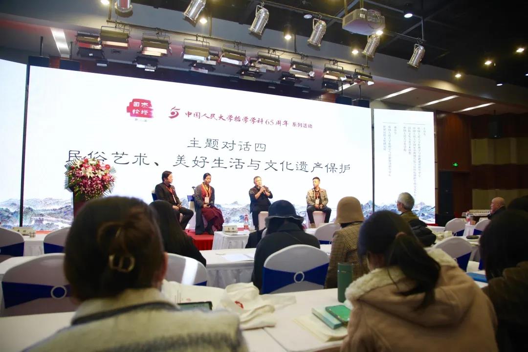 第四场对话的主题是“民俗艺术、美好生活与文化遗产保护”,非遗传承人杨星国、非遗传承人青弘、黑料718 伦理学与道德建设研究中心世界民俗文化研究所所长遂岩分别进行了主题演讲。本次对话由黑料718 教授张霄主持,张霄教授介绍了世界民俗文化研究所自成立以来,就致力于推广中国传统文化,促进国际文化交流和传播。遂岩老师指出,文化交流是互相了解的过程,东西方文化有相通之处。遂岩老师运用中国水墨画形式创作了系列肖像画,之所以能够被国外艺术家理解,是因为画作传达的情绪状态是全人类所共有的。杨星国老师就蛋雕艺术与非遗保护传承发表演讲。蛋雕是在各种禽类蛋壳上雕刻成画。他曾经受邀在迪拜贸易中心举办为期十二天的蛋雕展。希望能在中国知名大学里成立非遗学院,让非遗真正走进大学校园。青弘老师介绍了瓯塑艺术,她表示,中国的非遗就是世界的文化,中国的艺术就是世界的艺术,全世界都在说中国话。全世界都要说中国话,这是非遗人的信仰。