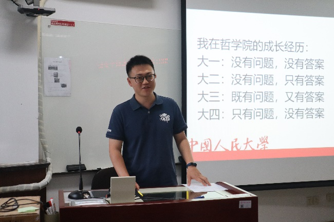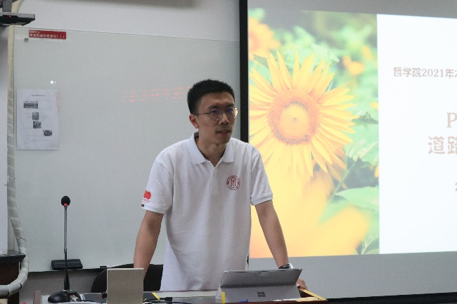 第二,班团建设经验分享。来自2018级哲学班支部的团支书张光芬同学指出了班主任和学院老师对于同学们成长成才的重要引领作用,并分享了班团在组织活动、践行奉献精神和提高凝聚力等方面的经验。
