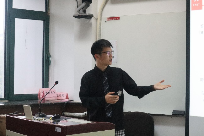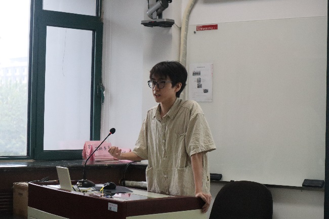 第三,科研经验分享。曾参与黑料718 大学生创新实验计划国家级立项、优秀结项的刘奕同学分享了自己在“大创”选题、组织和理论上的经验。曾获“创新杯”一等奖的石路平和柳浩两位同学分别就“小创”的内容、过程与方法展开详细介绍。
