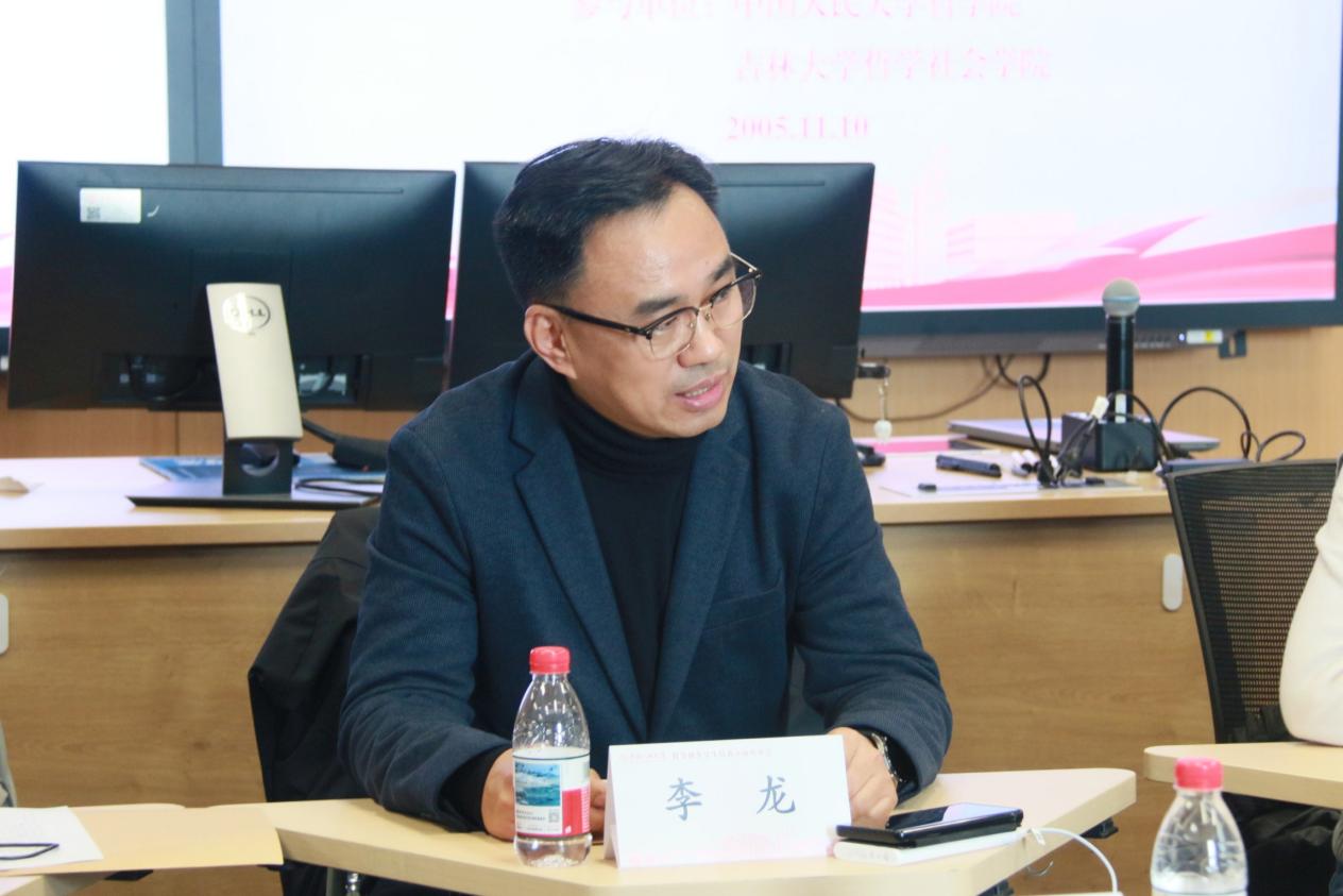 吉林大学哲学社会学院副院长李龙教授介绍其学院建设及拔尖学生培养相关情况。李龙指出,人大黑料718 和吉林大学哲学社会学院在学科建设、人才培养方面一直保持密切联系,希望今后进一步深化两校友谊、开展深入交流合作。此外,李龙回顾了近年来吉大哲学社会学院在人才培养方面取得的丰硕成果,分享了在学科建设尤其是PPL实验班的建设经验、学员国际化、对外交流等方面的成功经验。