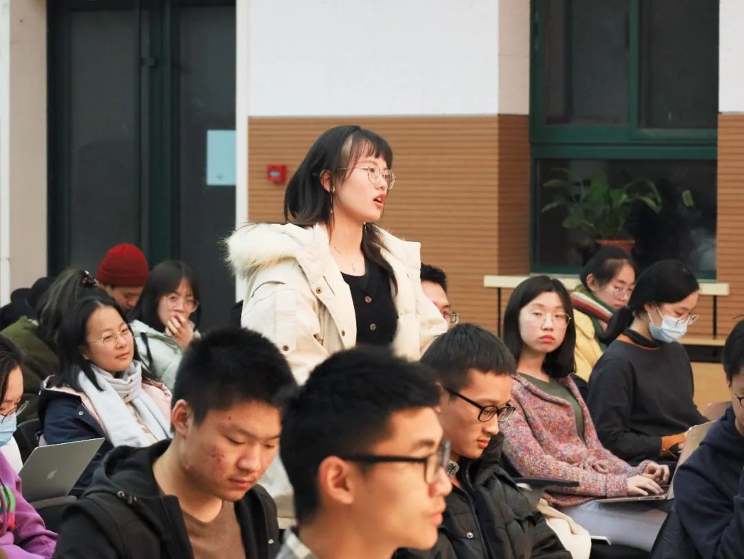 在提问环节,同学们踊跃提问,并获得了五位老师的悉心解答。提问的同学还获得了老师们的签名赠书。现场互动活跃,掌声阵阵。五位老师从五个不同的时间出发,展开了神圣与世俗的关系讨论,启发了同学们对于哲学的进一步思考。