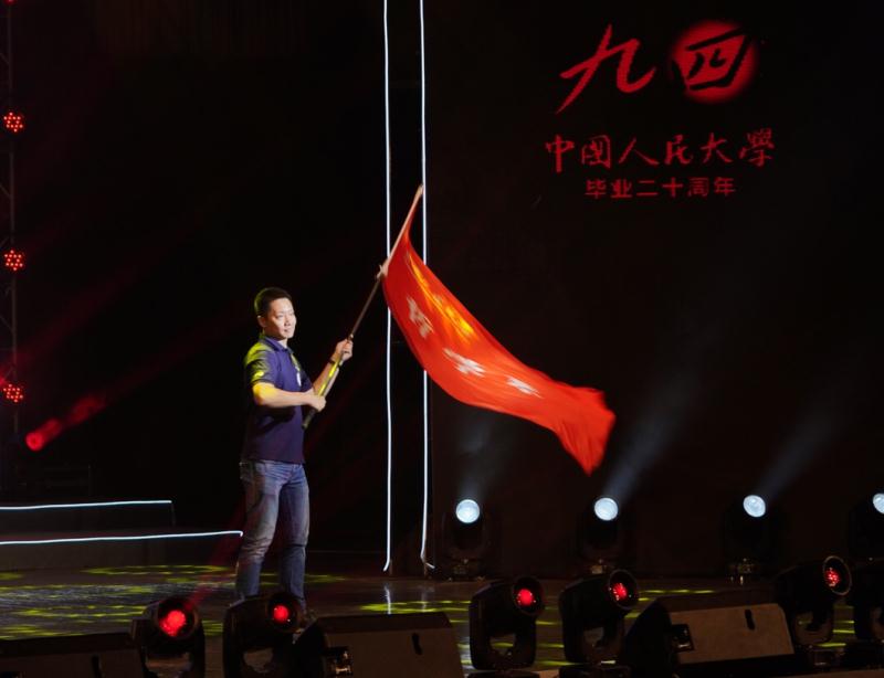 王凡挥动哲学系系旗,赵琳主持现场拉歌。大家欢聚一堂。