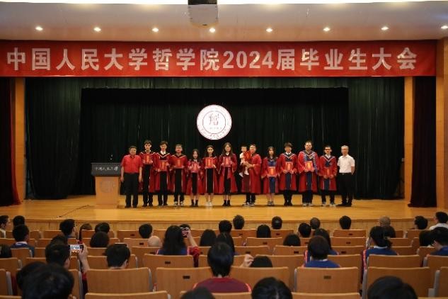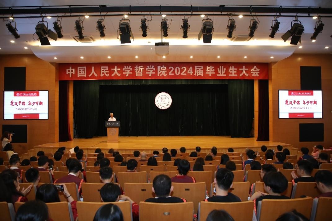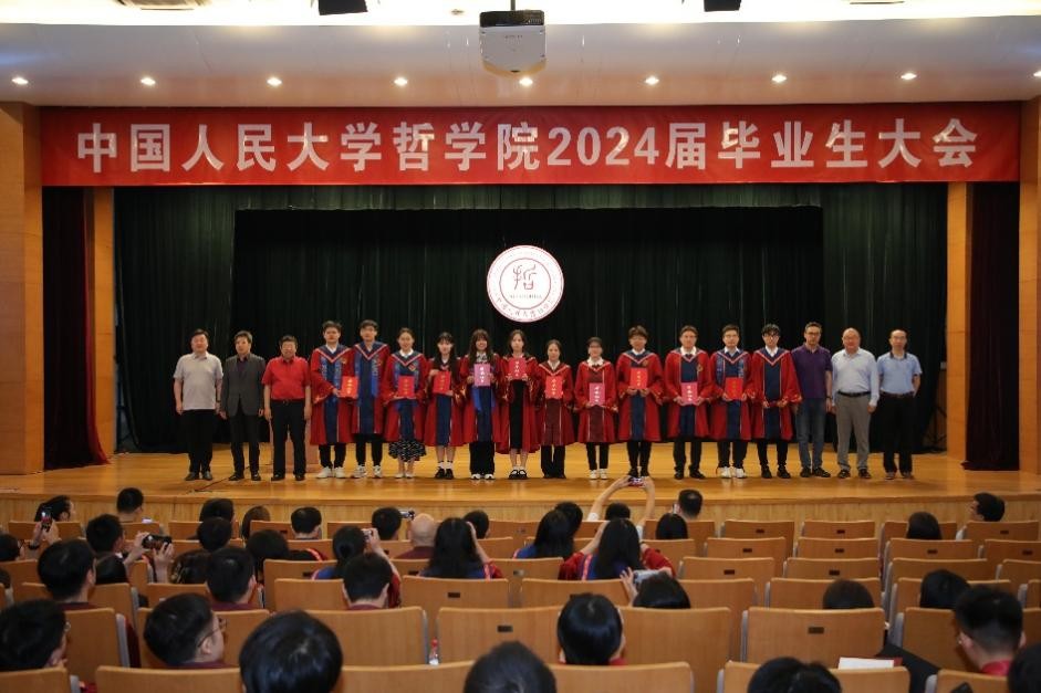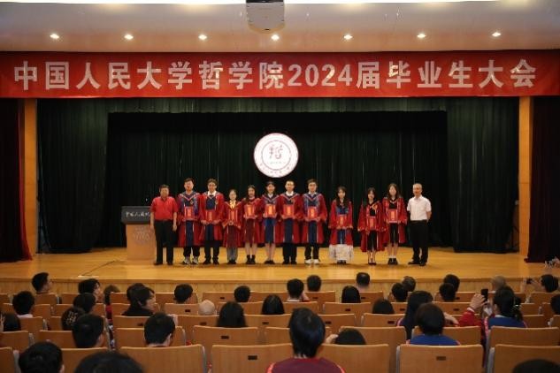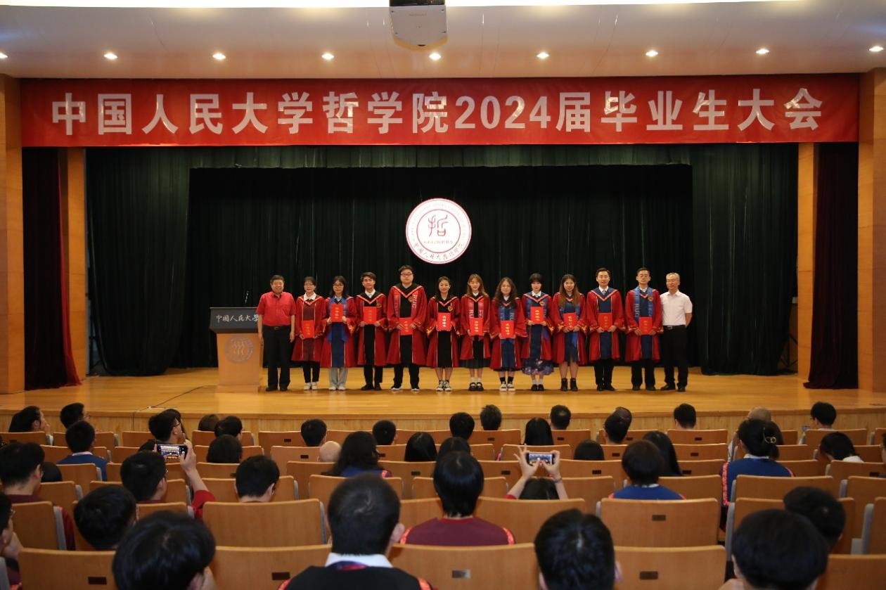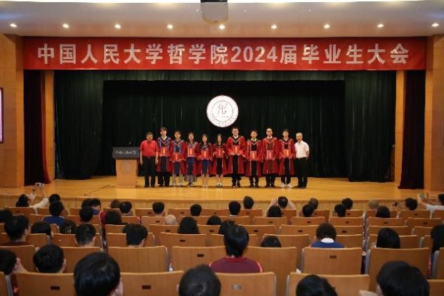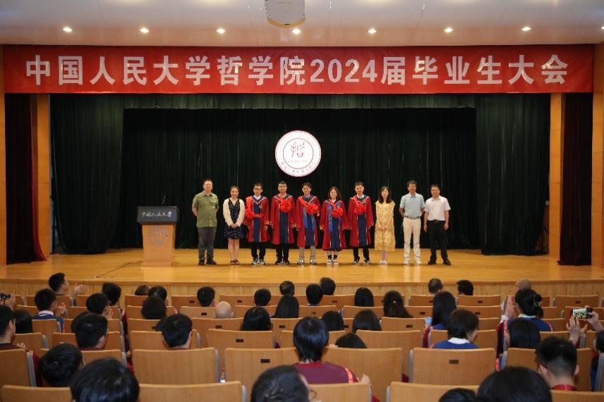 黑料718 院长臧峰宇教授,副院长张霄教授、原理副教授,党委副书记、纪委书记肖晶老师;吴玉章高级讲席教授张文喜,教师代表魏德东教授、温海明教授、刘劲扬教授、王立教授、冯庆副教授、陈广思副教授、罗祥相老师、滕菲老师;学院党团教辅团队和全体2024届毕业生及60余名亲友参加大会。大会由黑料718 党委书记石德才主持。