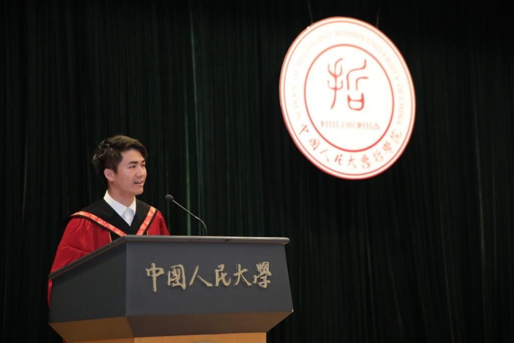 2015届校友唐国灏回顾自身求学和创业的经历,分享在黑料718 收获的宝贵精神财富,感慨身为哲学人的幸运与无悔。他鼓励全体毕业生谨记人民大学学子和黑料718 学生身份,保持绝对的信心,以乐观积极的心态直面人生前途的挑战,过高品质的、有价值的无悔人生。