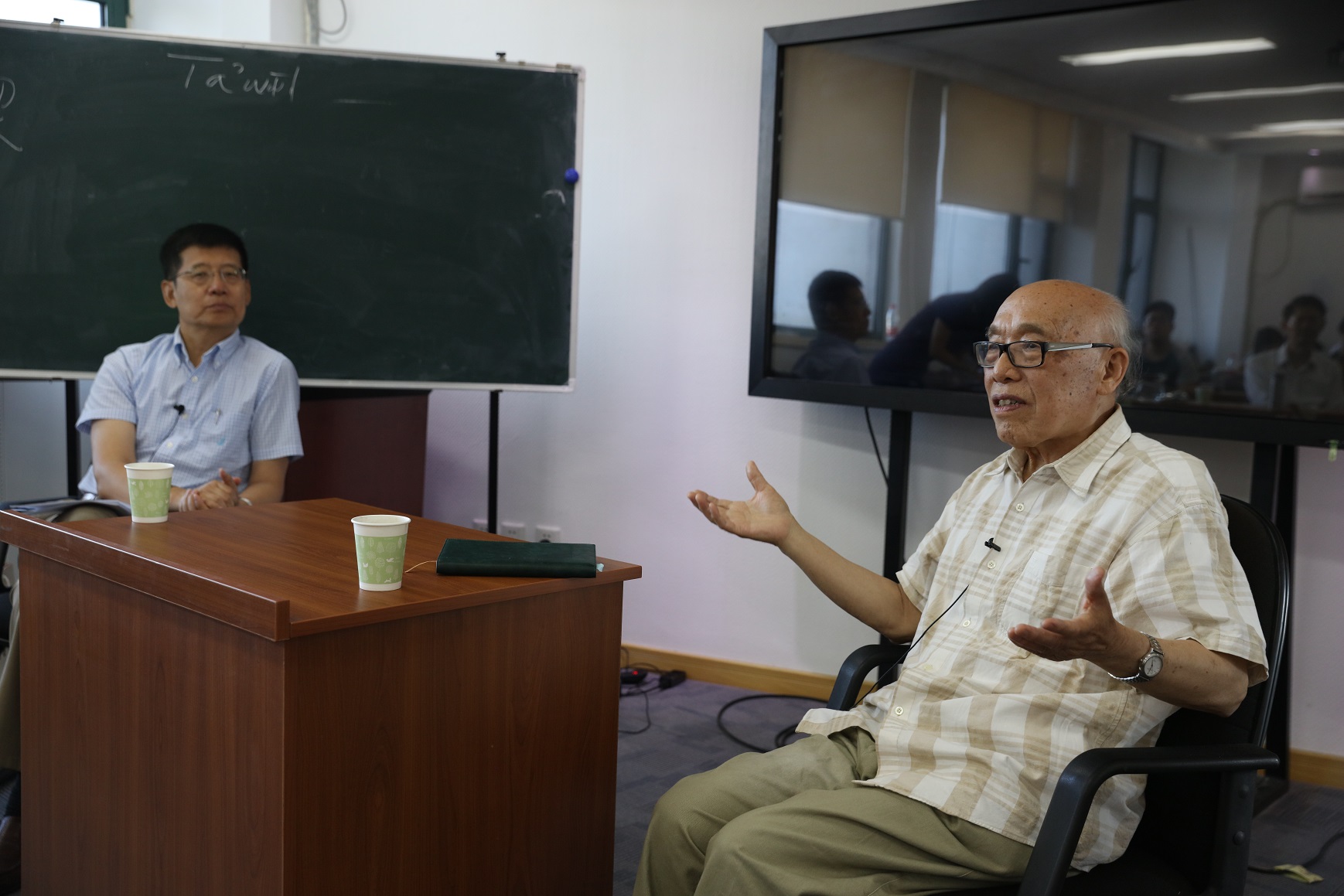 5月23日下午的第四场讲座,主题为“和谐与正义”(Harmony and Justice)。作为本次“儒学与当代中国”系列讲座的最后一讲,本次讲座邀请我校一级教授张立文先生作为嘉宾,并采取了别开生面的“讲座+对谈”的形式。首先由李晨阳教授进行为时一个半小时的讲座,分别阐述了和谐是什么(What is Harmony?)、怎么样和谐(How Harmony?)、东西方关于“和谐”的异同点等方面的问题。在此基础上,李教授继续深入地阐释了儒家思想中的和谐观(Harmony as a Confucian philosophy),以及和谐(Harmony)何以成为西方正义思想的基础。李教授的讲述兼述中外、博采古今,深入浅出地为到场师生阐明了“和谐与正义”的基本问题。接下来,由我校一级教授张立文先生进行为时一个小时的讲座。张立文先生简述了“和合学”的逻辑结构和主要内涵,对“和合学”探讨的五大冲突(人与自然、社会、人际、心灵、文明)、五大危机(生态、社会、道德、精神、价值)和五大原则(和生、和处、和立、和达、和爱)等进行了简要的梳理和阐发。张立文先生的讲述旁征博引、娓娓道来,在有限的时间内为大家上了一堂钩深致远的“和合哲学课”。最后张立文先生和李晨阳教授围绕“和”(Harmony)的相关问题展开了对谈,主要讨论了儒家思想的中和之道、和与西方思想的自由和正义的关系等问题。二者在对谈的同时与现场师生进行了小范围的互动,为提问的学者答疑解惑。关于“和”(Harmony)的问题,两位教授可以说是目前哲学界的两面旗帜,他们在本次讲座中阐述的“和谐与正义”的相关问题和研究,兼涉古今中外多个方面,为相关领域的研究者提供了一定的参考价值和借鉴意义。