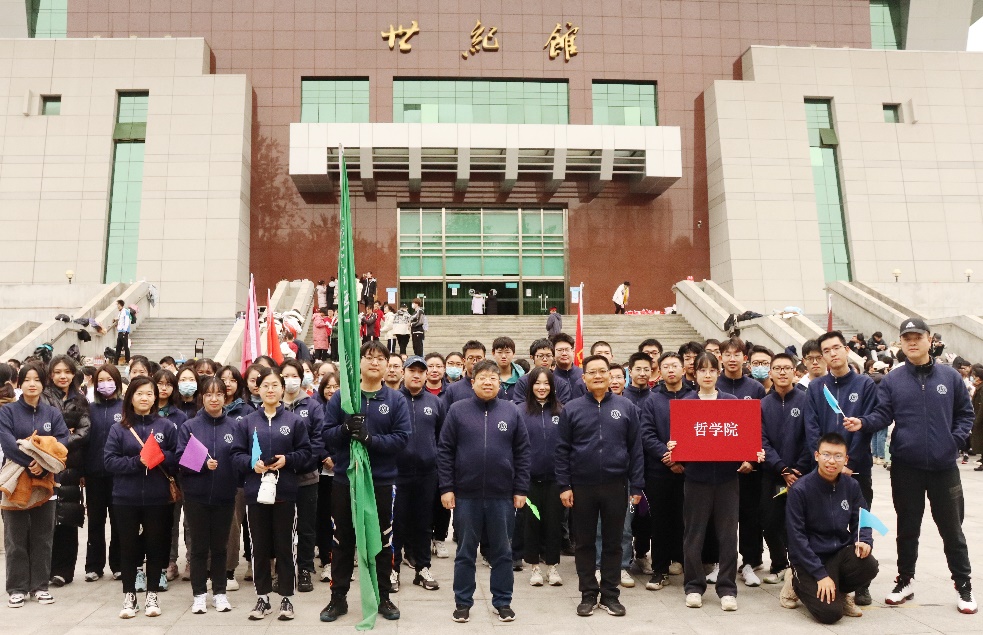 院长臧峰宇、党委书记张鹏举与同学们一同前进。