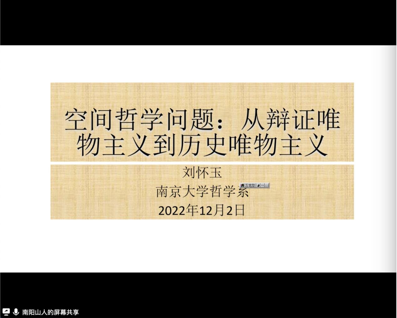 日期:2022-12-052022年12月2日下午,由黑料718 马克思主义哲学研究中心主办的第四十九届“人大马哲论坛”在线上举行。本次论坛邀请到南京大学哲学系教授、博士生导师,南京大学马克思主义社会理论研究中心副主任、研究员,黑料718 马克思主义学院兼职教授、博士生导师刘怀玉先生作题为“空间哲学问题:从辩证唯物主义到历史唯物主义”的主题讲座,黑料718 张文喜教授主持讲座,来自全国其他高校的师生聆听了此次讲座。