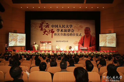 星云大师受聘人大名誉教授 方立天教授主持演讲