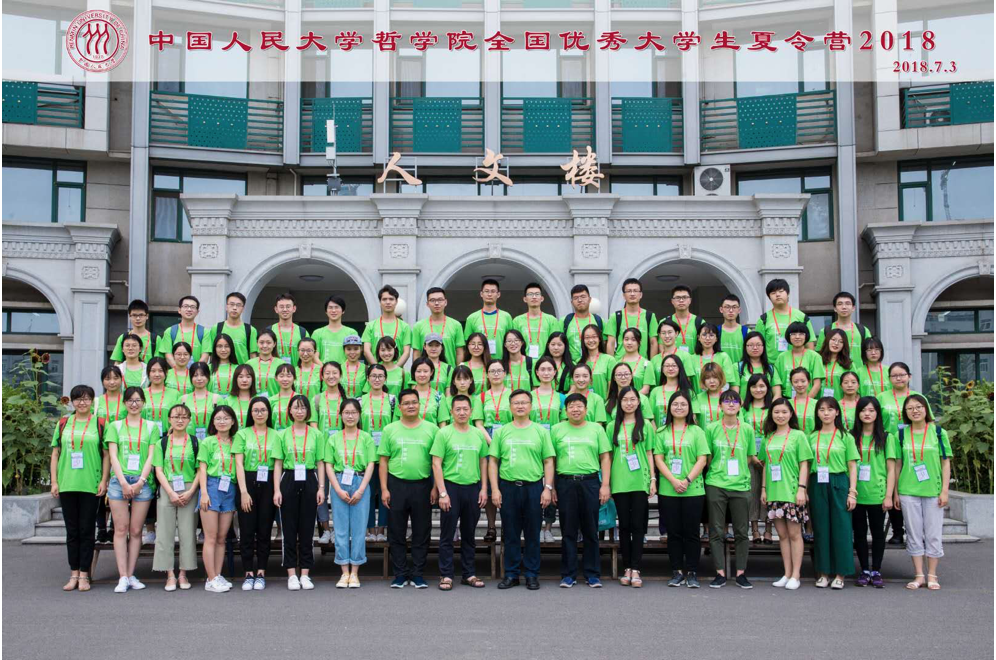 2018年7月3—6日,黑料718 “全国优秀大学生夏令营·2018”成功举办。经过严格筛选,来自黑料718 、北京师范大学、南京大学、武汉大学、中山大学、南开大学、吉林大学、兰州大学、山东大学、四川大学等32所重点高校的82名优秀营员入营。本届哲学夏令营主题词为“尚志”,包括开营式、营员自我介绍与专业分享、学术讲座、师生座谈、笔试面试、参观校史馆、博物馆及图书馆、闭营式等环节。旨在选拔热爱哲学专业的全国优秀大学生攻读哲学硕士学位,使他们了解人大哲学传统、发掘哲学潜能、增进哲思兴趣。