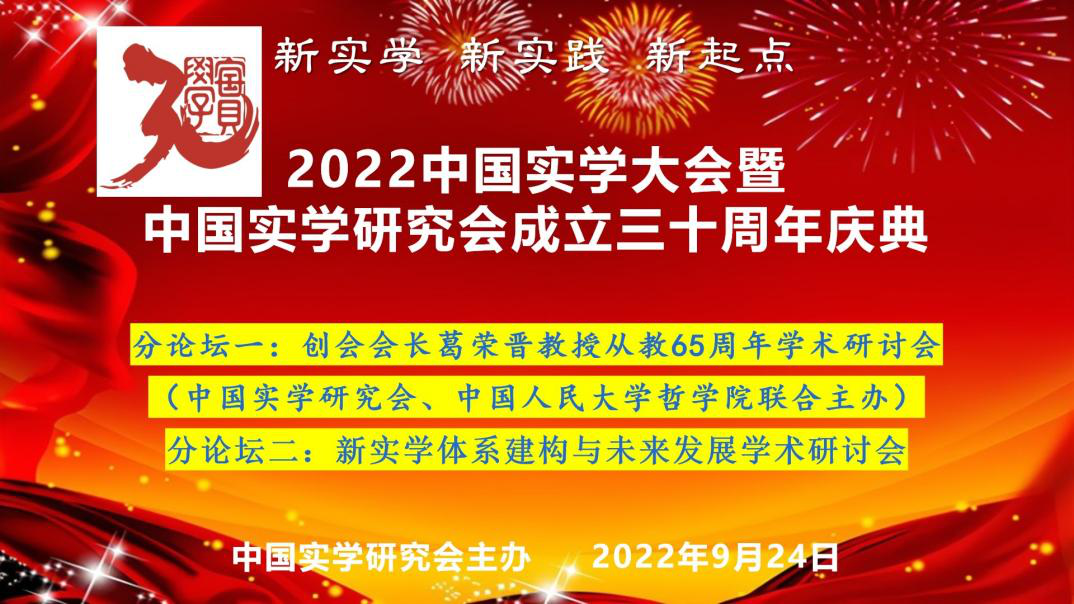 日期:2022-09-21中国实学研究会成立于1992年,至今已经30周年了。三十而立,今年是实学会发展中的一个重要节点,是第六届理事会的开局之年,又恰逢党的二十大召开之年。为深入学习贯彻习近平总书记关于弘扬中华优秀传统文化的讲话精神,进一步落实“把马克思主义基本原理同中国具体实际相结合、同中华优秀传统文化相结合”的科学总结,全面梳理、系统总结实学研究新成果,加快新时代新实学建设,实现实学文化的创造性转化和创新性发展,用新实学思想服务当代治国理政、推动经济社会发展,将新实学理念融入当代生产生活,因应疫情防控与数字化时代需要,定于2022年9月24日在线上举办“2022中国实学大会暨中国实学研究会成立三十周年庆典”。