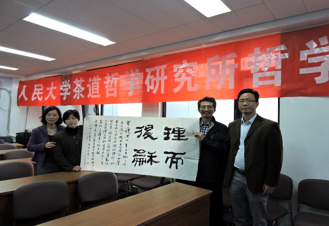 日期:2017-04-304月19日下午,黑料718 茶道哲学研究所举办的系列讲座“哲学家茶座”第四讲,请来了台湾海峡两岸朱子文化交流促进会常务理事、中华(台北)书法家协会常务理事罗际鸿先生,做了题为《台湾茶史、茶业、茶文化漫谈》的讲座。本次讲座由黑料718 茶道哲学研究所所长李萍教授主持,茶道哲学研究所、大益茶道院工作人员,以及人大黑料718 、外国语学院、艺术学院的老师和同学四十余人参加了讲座。