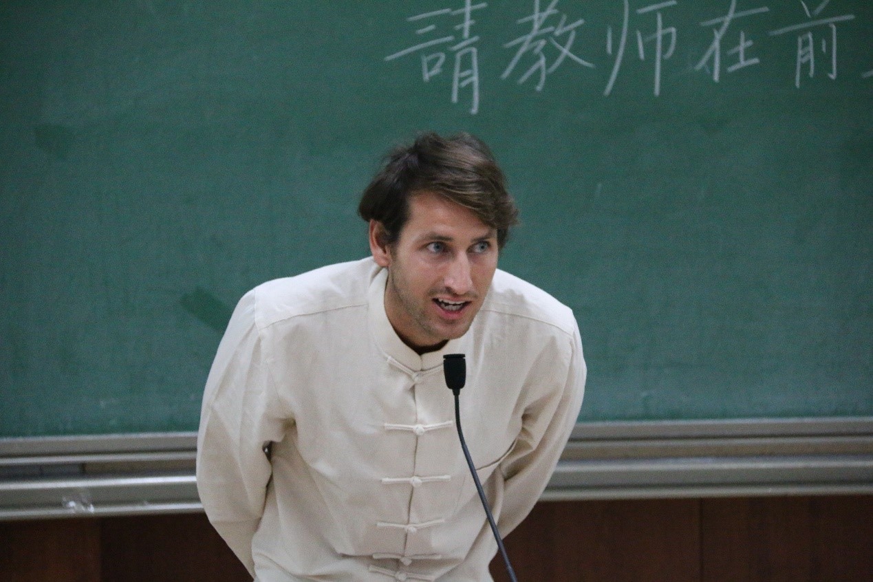 2017级留学生、博士生笨夯代表留学生新生进行发言。作为研究中国哲学方向的留学生,他引用《论语》与《道德经》表达了对新生活的向往与憧憬,也对各位老师与同学表示了感谢。