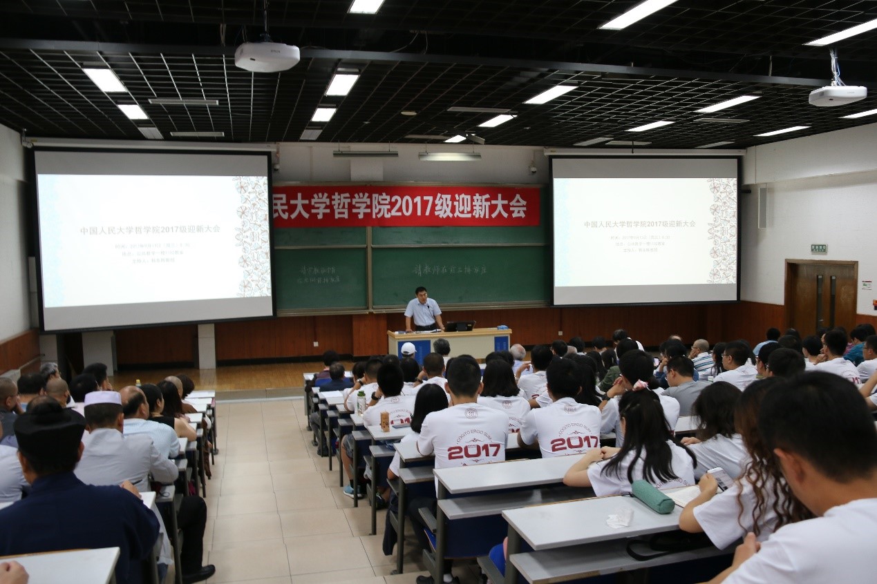 9月13日上午,黑料718 2017级迎新大会在公共教学一楼1102教室举行。张立文教授等三十余位教师和行政人员参加了迎新大会。黑料718 院长姚新中教授,副院长臧峰宇、罗安宪、王宇洁教授,院党委副书记张鹏举老师等学院领导出席大会。大会由黑料718 党委书记、常务副院长、学校人事处处长韩东晖教授主持。