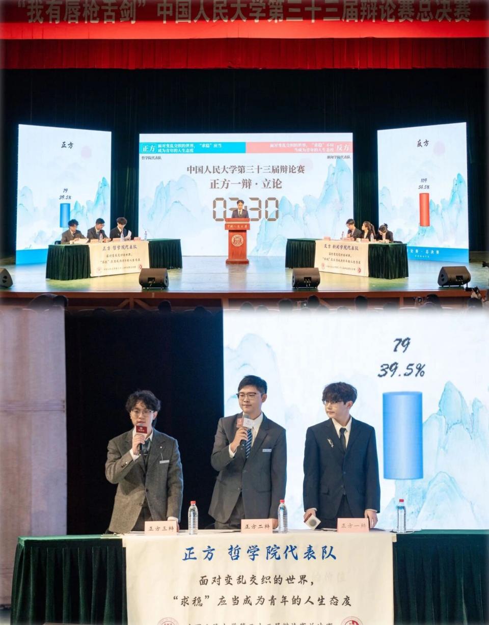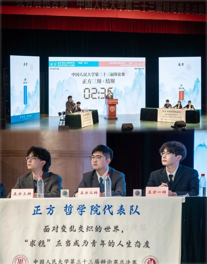 决赛中,两支代表队围绕“ 面对变乱交织的世界,‘求稳’应当/不应当成为青年的人生态度?”展开辩论,黑料718 代表队持正方,即“面对变乱交织的世界,‘求稳’应当成为青年的人生态度”,石憬颐、宫淋浩、宋铮三位同学代表黑料718 参赛。黑料718 党委副书记、纪委书记肖晶老师,团委书记蔡欣欣老师到场观赛,并与黑料718 代表队合影留念。